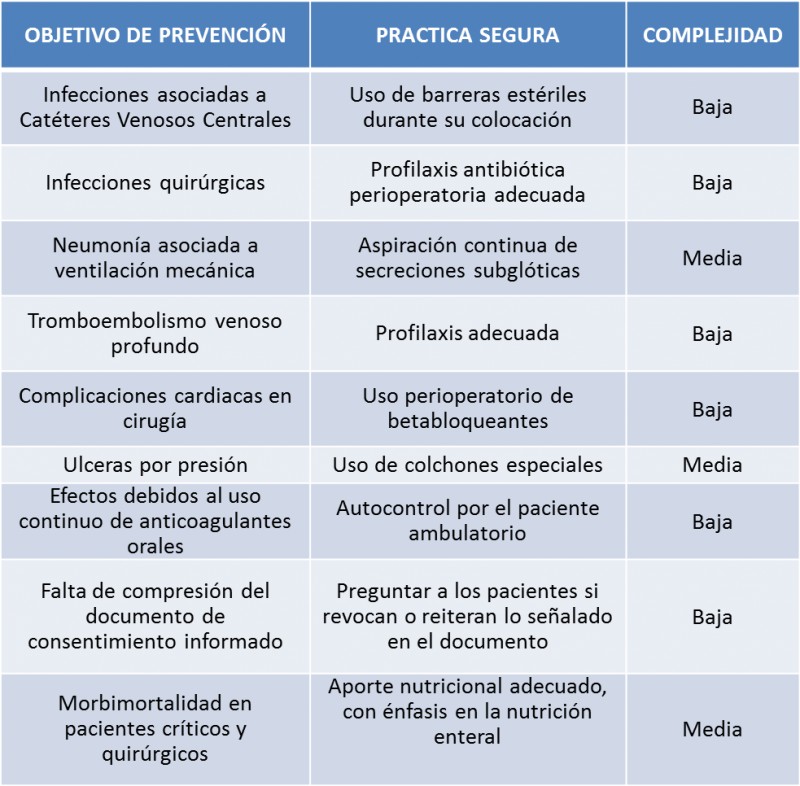 Tabla 1. Prácticas seguras con el máximo grado de evidencia