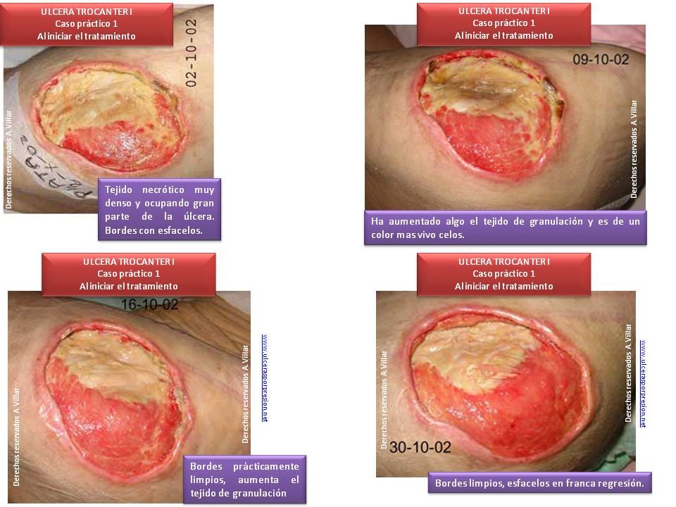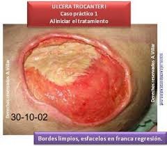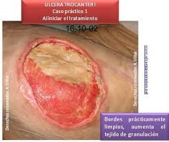 Una vez mejorado su estado general de salud, así como su incontinencia urinaria y la úlcera en el trocánter podra ser dado de alta con una continuidad de cuidados a realizar por su enfermera de referencia del centro de salud que le corresponda. La herida seguirá curandose cada 48-72 horas. Progresivamente vaya reduciendo su tamaño y finalmente desaparezca tras varias semanas.